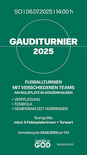 Am 06.07.2025 organisierten die Juniors of GOD erneut ihr beliebtes Gauditurnier. Bei bestem Sommerwetter und großem Andrang von Spielern wie Zuschauern wurde das Event wieder zu einem vollen Erfolg.