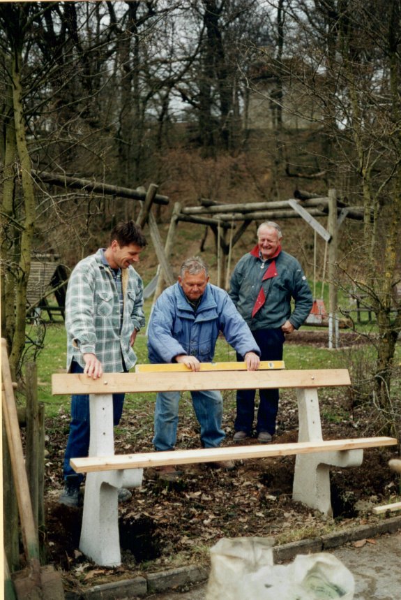 Eine finanzielle Hilfe seitens der Gemeinde Eching war dabei nicht zu erwarten. Die Bänke waren also in Eigenleistung zu entwerfen, zu fertigen und zu installieren.